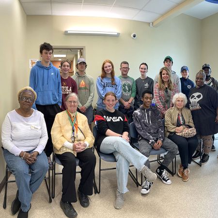 Students from Loyola Academy, a Jesuit high school north of Chicago, combined a day of service with an immersion experience at MBHS. Sr. Jean Ellman, Urban Immersion Coordinator from Milwaukee’s Casa Romero, arranged the visit. Merryn, who has participated in several immersions through Campus Ministry at Loyola, said, “It’s amazing to me that everyone is able to keep such a positive attitude and so much kindness towards each other. I could kind of feel it when I walked in, but it took a few minutes. Everyone works together and knows each other’s name because they’re open to knowing.”