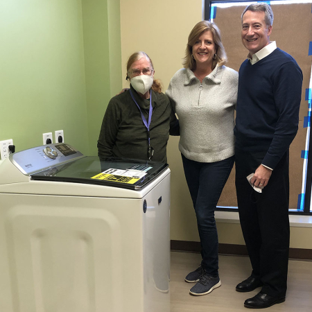 “The gift of this brand new washer heralds the new day for people to have showers and the dignity of good grooming in our Welcome Center,” Sister MacCanon said.